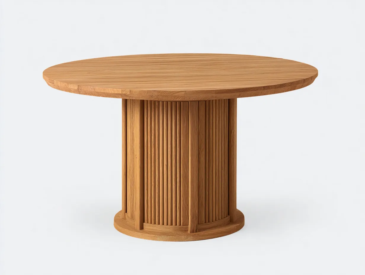 This round garden table is designed to provide a practical and visually balanced solution for outdoor dining spaces. The generous tabletop offers ample room for daily use and social gatherings while maintaining a refined and natural look.